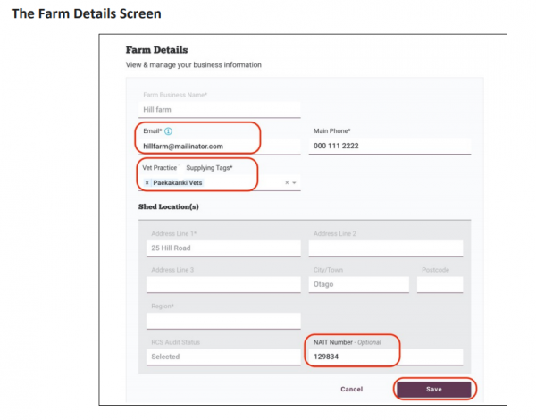 “If you can’t find the name of your vet practice when you register, please phone your vet and let them know you are unable to link your farm to their practice until they have registered with VelTrak,” says Pam.