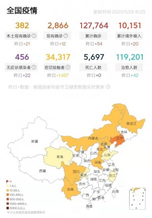 Screenshot of Covid-19 situation in China, as at 29 Nov. Dalian is located in the dark orange – signifying higher infection risk