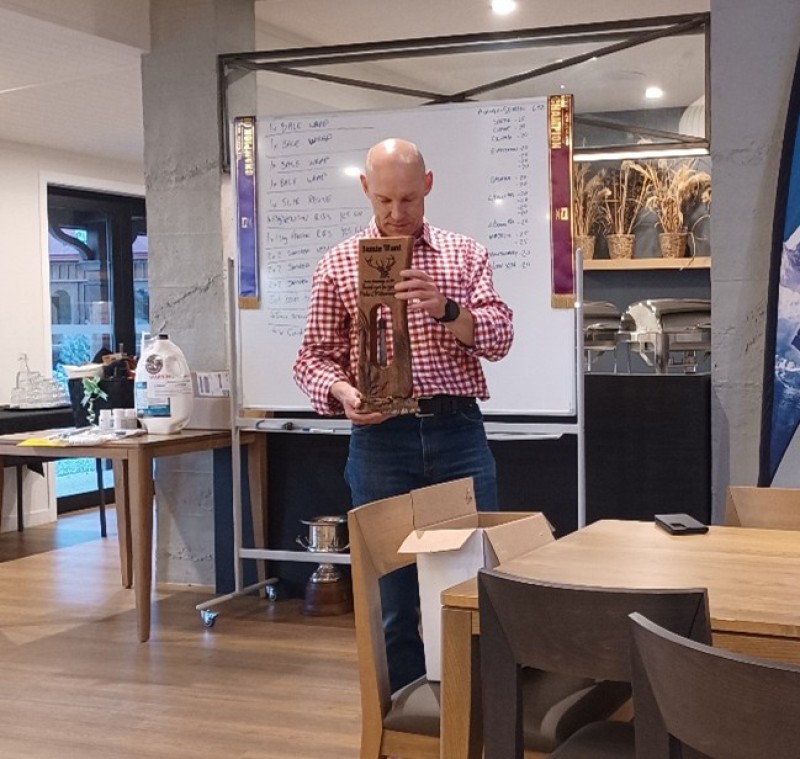 And just over a week later the Elk & Wapiti Society of NZ held its AGM and Velvet and Hard Antler competition in Cromwell. This is the only active breed society, but it certainly is active. Entries were down on last year – a pattern seen in all velvet competitions this season, but quality remains as good as ever. With good velvet and venison prices there was a buoyant mood and as the last competition for Grant Hasse as president of society it was a nice ending for him and a smooth transition for Glen Whyte stepping in as the new president. The awards dinner also featured a special presentation to Jamie Ward from the breeders in appreciation for his research over many years at AgResearch.